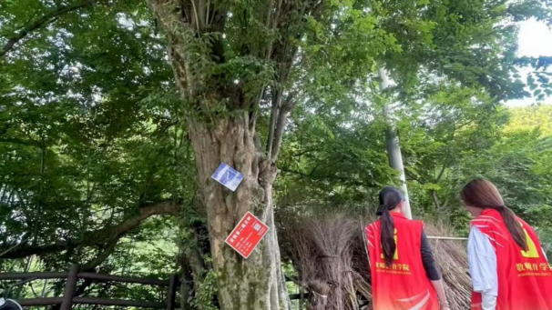 在白阳岗,最引人注目的当数那些见证岁月变迁的古树。有着“飞龙檀”之称的安徽省一级古树青檀,树干粗壮扭曲,犹如一条蓄势待发的蛟龙,盘根错节间尽显沧桑与坚韧。枝叶繁茂如巨伞,为大地洒下一片阴凉。树下的介绍牌详细记录着它的树龄、品种等信息,队员们围在古树旁,听村里老人讲述着关于它的传说。相传乾隆南巡时曾在此树下休憩,后将其采摘的野茶赐名“瑞草魁”成为贡茶。它不仅是自然的奇迹,更是白阳岗历史的活化石,承载着一代又一代村民的记忆与情感。