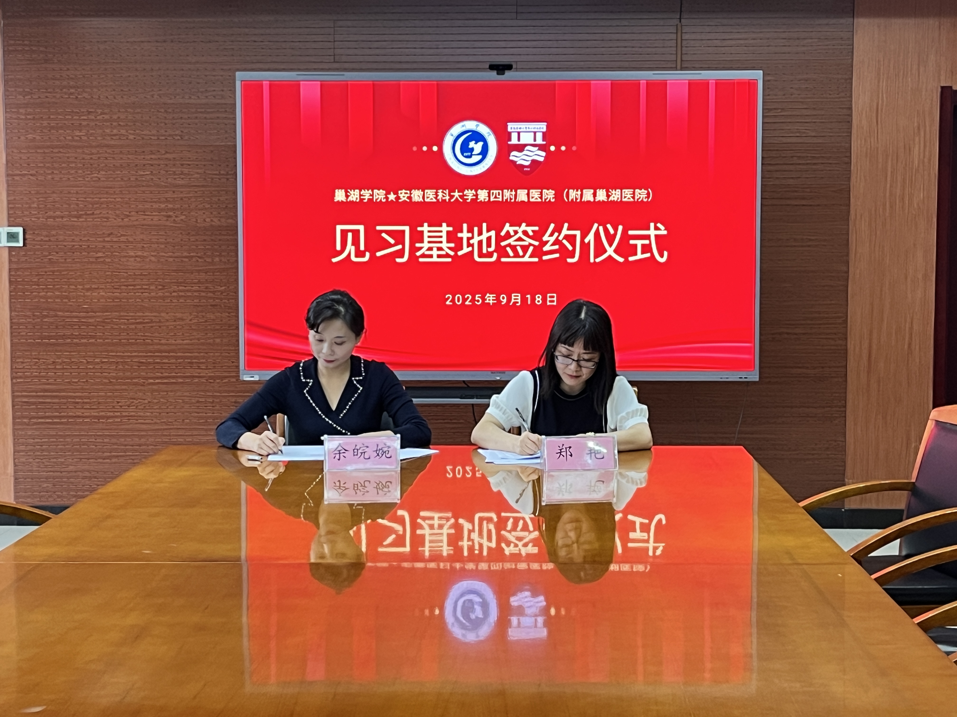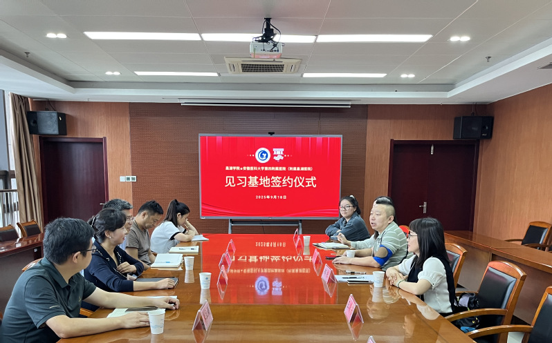 为强化应用型人才培养,拓宽应用心理学专业实践育人渠道,9月18日上午,教师教育学院院长蔡广、副院长郑艳、心理健康教育中心秘书王安琪、应用心理学专业学生一行赴安徽医科大学第四附属医院开展访企拓岗交流活动,并正式签署见习基地建设合作协议。安徽医科大学第四附属医院党委副书记余皖婉,安徽医科大学第四附属医院精神科主任张凯,学生科科长连捷、教育科科长朱立雨、学生科秘书汪晴参加签约仪式。