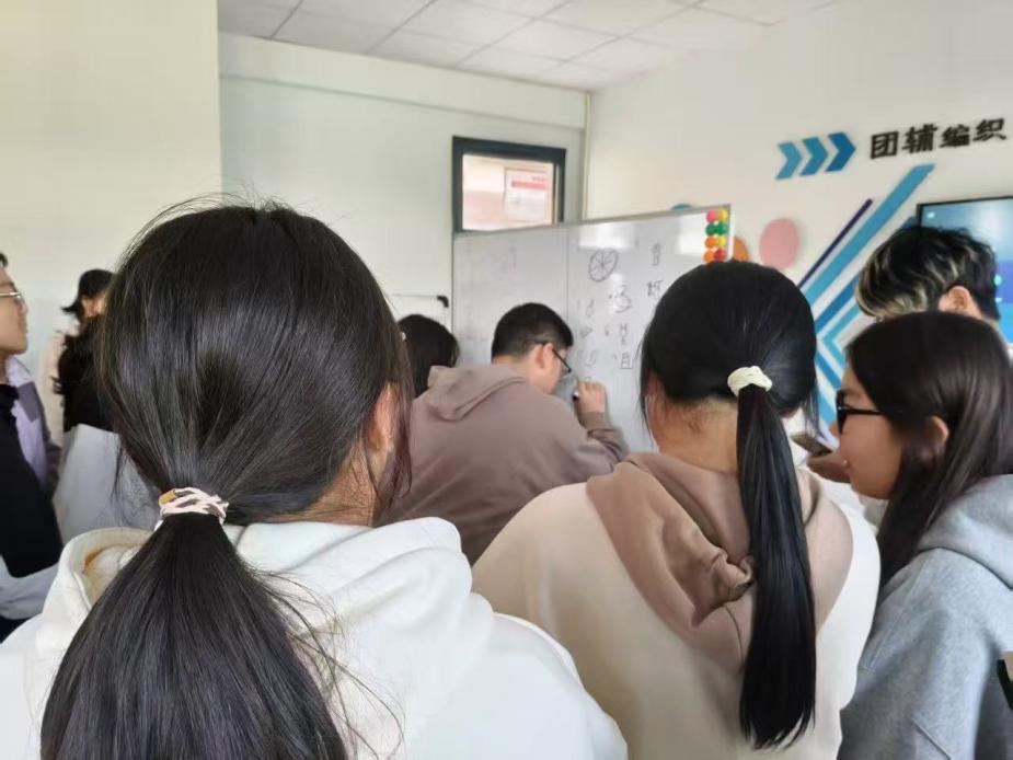紧接着,“你画我猜”游戏依次展开。各组同学借助简洁的线条与创意涂鸦描绘指定词语,其他成员则从不同角度解读画面、交流想法。通过这一游戏,同学们之间的思维相互碰撞,不仅进一步拉近了彼此的距离,还让大家在轻松愉悦中感受到了集体智慧的魅力,为后续携手同行开启了良好的开端。