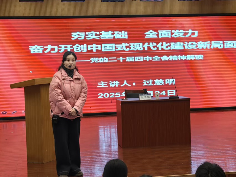 过慈明以《夯实基础 全面发力:奋力开创中国式现代化建设新局面》为题,从准确理解“十五五”时期经济社会发展的历史方位和内外环境、深刻领会“十五五”时期经济社会发展的总体要求和战略部署、深入把握学习贯彻党的二十届四中全会精神的实践要求三个方面,系统解读了党的二十届四中全会精神。