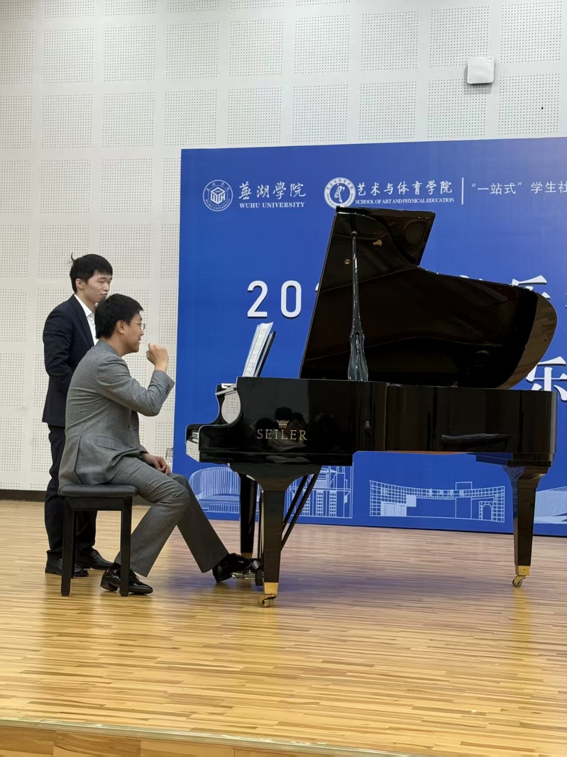 12月24日,教师教育学院青年教师王程博士应邀赴芜湖学院艺术与体育学院做“钢琴表演实践理论的实际应用”学术讲座。芜湖学院艺术与体育学院院长肖磊、办公室主任陈宇、钢琴系主任韩啸和钢琴教师参加讲座。