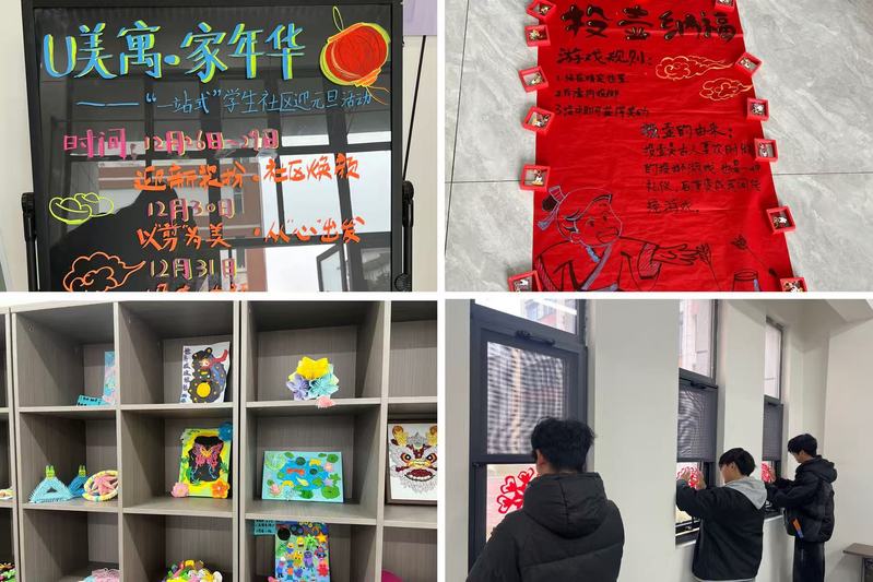 值此元旦来临之际,为营造喜庆祥和的节日氛围,打造活力温馨的学生社区,12月26日至31日,教师教育学院与美术与设计学院在滋兰苑1-2栋“U美寓”·“一站式”学生社区组织开展“U美寓家年华”迎元旦系列活动。