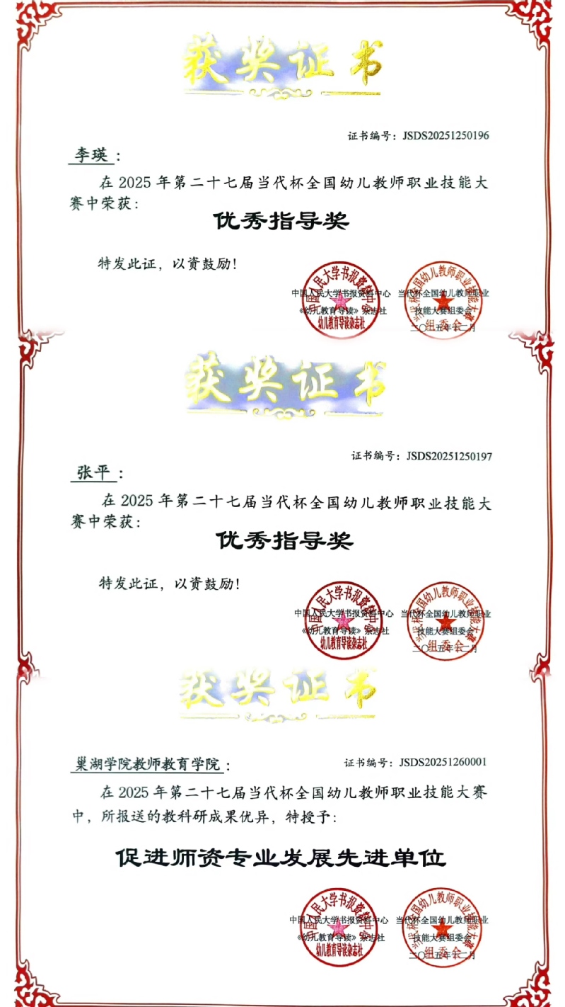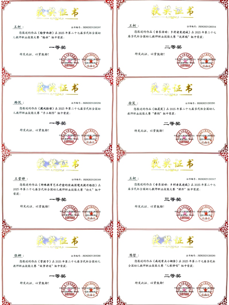 以赛促学、以赛促教、以赛促研。同学们在比赛中锻炼了专业技能、增长了综合才干,赛事也为学前教育专业人才培养与教学改革提供了重要实践参考。教师教育学院学前教育专业将继续不断深化教育教学改革,丰富实践育人形式,陪伴每一位师生在专业成长的道路上持续突破,共同为学前教育事业的高质量发展添砖加瓦。(文/朱小泉 图/甘超 初审/郑艳 终审/蔡广)
