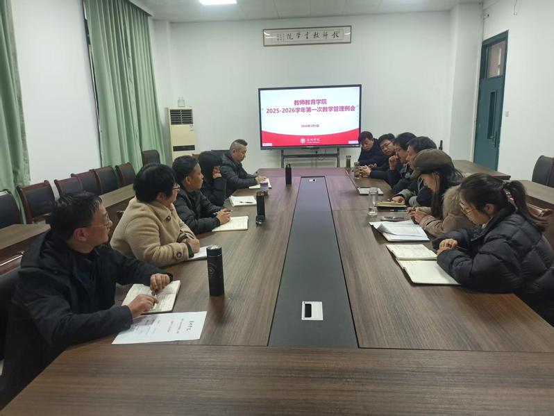 为扎实推进新学期教学工作有序开展,压实教学管理责任,提升人才培养质量,3月5日下午4:00,教师教育学院在院会议室104召开本学期第一次教学管理工作例会。学院党委书记胡传双、院长蔡广、科研副院长马磊、各系部主任、实验室主任、专业负责人、教学秘书及心理健康教育中心、美育中心相关管理人员参加会议,会议由教学副院长郑艳主持。