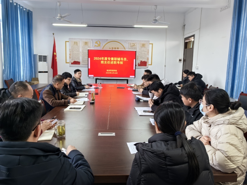1月14日上午,旅游管理学院开展2024年度专兼职辅导员、班主任述职考核工作。学院领导班子、全体专兼职辅导员、班主任参加会议,会议由学院党委副书记邓其志主持。