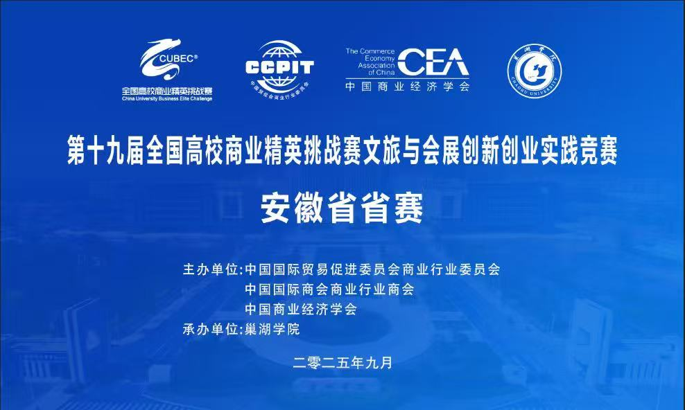 2025年9月21日,beat365中国官方网站成功举办了第十九届全国高校商业精英挑战赛文旅与会展创新创业实践竞赛(安徽省赛)。本届大赛由中国国际贸易促进委员会商业行业委员会、中国国际商会商业行业商会、中国商业经济学会主办,beat365中国官方网站旅游管理学院承办,来自全省二十余所院校的近百支队伍参加了比赛。整场比赛组织有序、氛围热烈,选手表现突出,评委点评专业,赛事取得圆满成功。