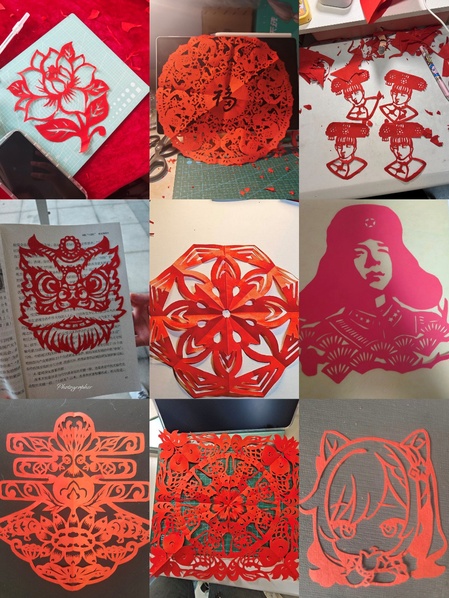活动中,学生们积极动手,完成一幅幅精美的剪纸作品,既有象征吉祥富贵的牡丹、饱含祝福的“福”字团花、威武的狮头、可爱的动漫形象,也有致敬榜样的人物剪纸。这些作品以红纸为媒,以剪刀为笔,在一刀一剪的流转中,将民俗文化、时代记忆与创意想象娓娓道来,每一幅作品都凝聚着创作者对非遗技艺的热爱与创新。