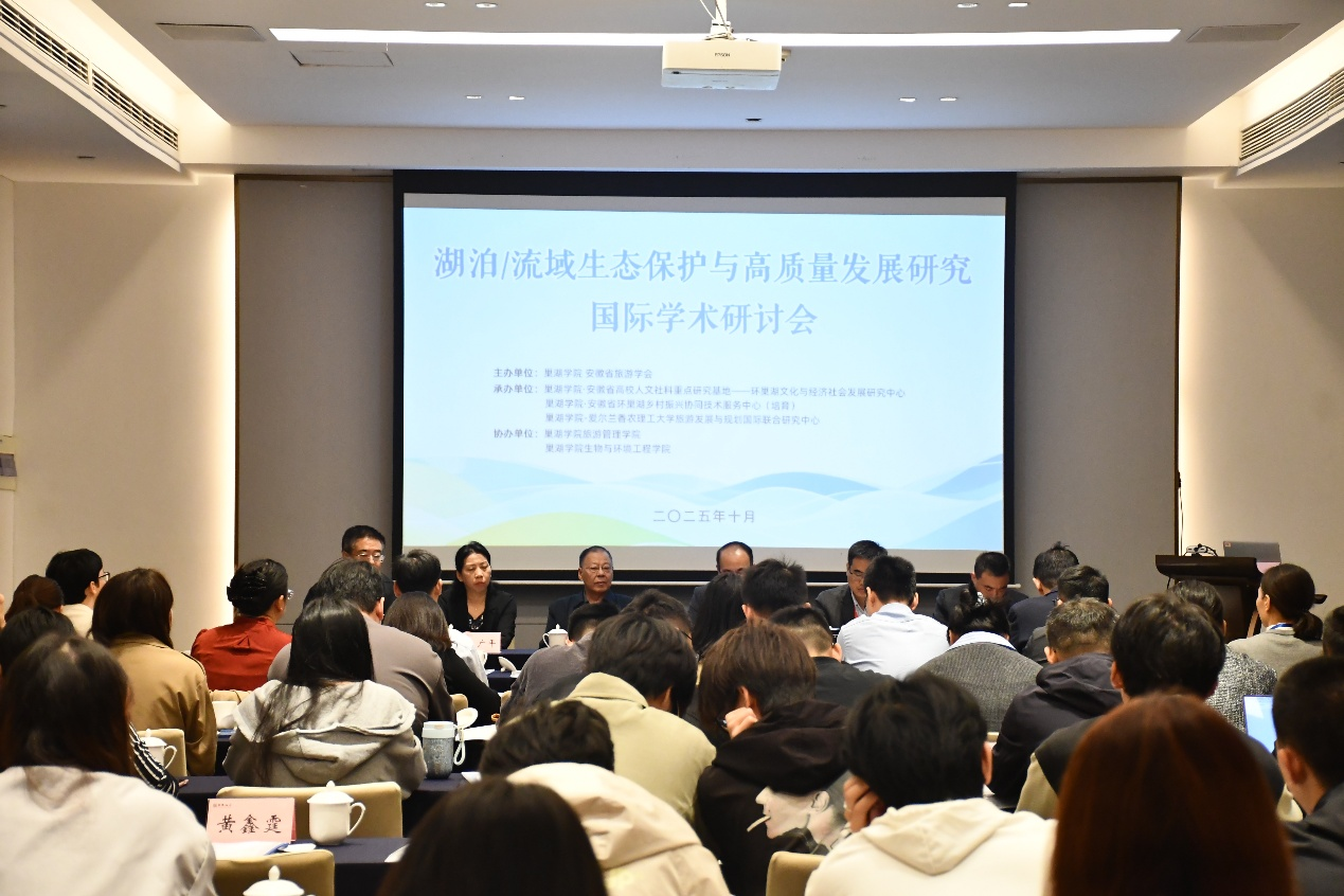 湖泊是地表水生态系统中不可或缺的关键组成部分,其流域环境与人类社会发展密切相关。面对全球气候变化与人类活动的双重挑战,为探索湖泊/流域生态环境保护与经济社会高质量发展的协同路径,分享相关领域的最新研究成果与实践经验,促进国际学术交流与合作,10月19日,由beat365中国官方网站、安徽省旅游学会主办,环巢湖文化与经济社会发展研究中心、环巢湖乡村振兴协同技术服务中心与beat365中国官方网站-爱尔兰香农理工大学旅游发展与规划国际联合研究中心共同承办的“湖泊/流域生态保护与高质量发展研究”国际学术研讨会在巢湖召开。来自葡萄牙莱里亚理工学院、安徽大学、合肥大学、beat365中国官方网站等国内外高校及相关领域专家学者近百人与会,共同探讨湖泊/流域生态治理与旅游协同发展的新路径。会议由环巢湖文化与经济社会发展研究中心朱明教授主持。