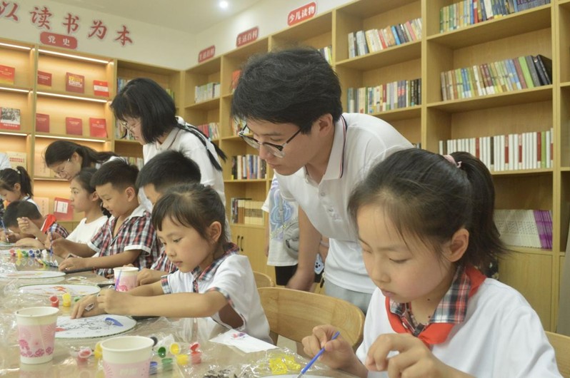 7月4-5日,实践团的身影出现在巢湖市西山社区党群服务中心和岗岭社区党群服务中心。延续寓教于乐的理念,队员们不仅详细介绍了“十大皖药”,更创新性地结合传统绘扇技艺,引导小朋友们拿起画笔,在素面团扇上描绘出各种草药的形态。一笔一画间,草药的形象跃然扇上,随着画笔,知识刻入脑海、草药深植于心,传统文化之美在方寸扇面中流淌。角色扮演游戏同样深受欢迎,让孩子们在欢笑中巩固所学。