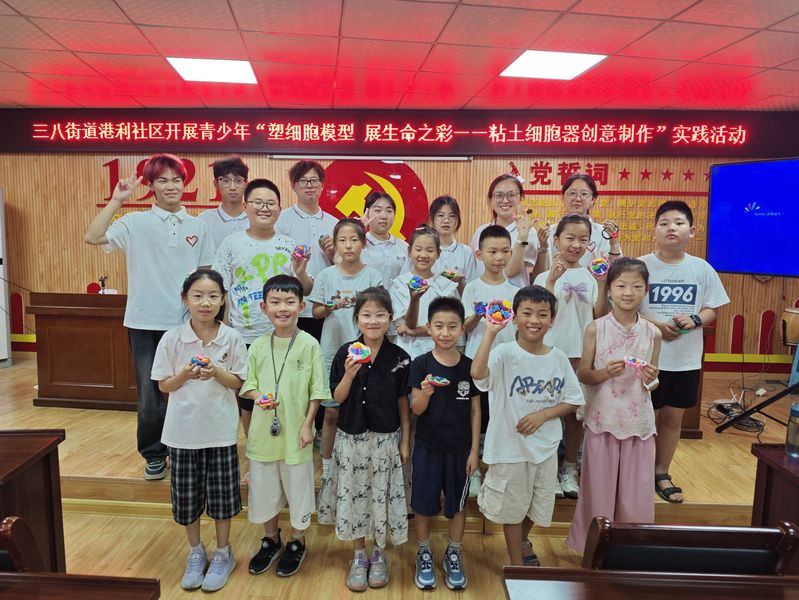 7月10日,服务团队在港利社区新时代文明实践站开展奇妙的细胞世界科普实践活动。队员们借助生动形象的3D细胞模型和动画视频,向孩子们详细介绍细胞的基本结构,重点讲解了线粒体、叶绿体、细胞核等8种主要细胞器的形态特征和功能。