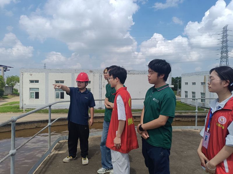 7月8日,团队赴花山污水处理厂实地调研。在技术人员带领下,队员们依次参观了格栅间、沉砂池、生物反应池等核心工艺单元,全程见证了污水由浊变清的全过程。技术人员详细讲解了各环节处理原理及技术要点,队员们结合专业知识积极提问交流。通过实地学习,队员们深刻认识到污水处理设施作为城市“肾脏”对保护巢湖水质的重要作用,进一步增强了投身环保事业的责任感和使命感。