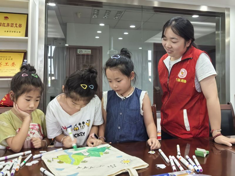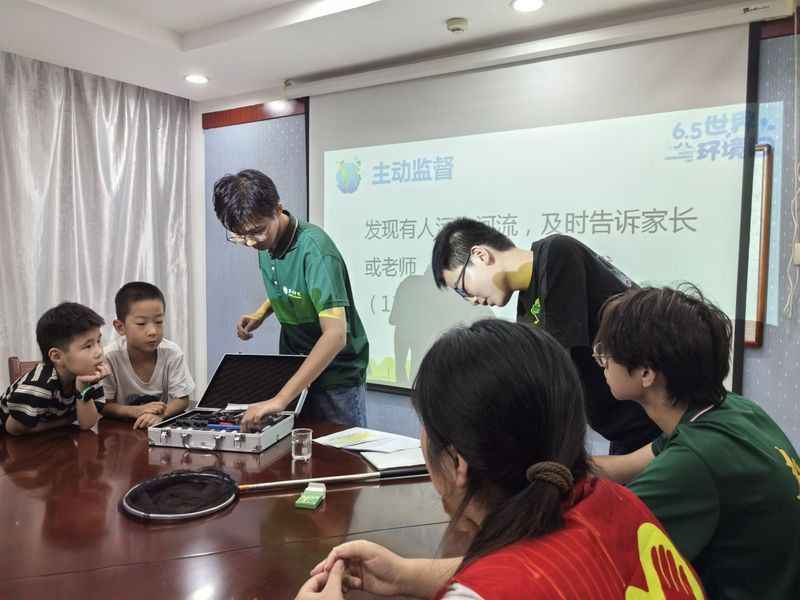 7月4日,实践团走进巢湖市岗岭社区,面向社区儿童精心策划了一场别开生面的“河流保卫战”主题科普活动。同学们巧妙设计,将节水知识、垃圾分类、水源保护等环保理念融入“谁能更节水”情景模拟、“垃圾分类大闯关”卡片配对等趣味游戏中,让孩子们认识到水资源污染的危害,掌握了实用的节水护水小妙招。活动尾声,团队向小朋友们赠送了原创设计的河流保护主题文创产品,如环保标语书签、萌趣河鲜徽章等,让生态文明的种子在幼小心田生根发芽,培育新时代“小河长”。