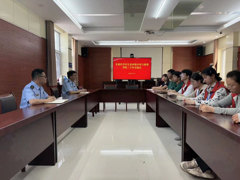 7月7日,团队在指导老师晁天彩的带领下赴安徽巢湖经济开发区生态环境分局开展专题交流座谈。郭搏凡科长系统介绍了巢湖当前水环境质量状况、主要污染源解析、近年实施的重大生态修复工程及治理成效等情况。队员们结合连日来的实地见闻,就观测到的具体现象、存在的技术困惑与治理难点,与工作人员进行了深入探讨。此次交流深化了学生对流域综合治理复杂性与系统性的理解,为未来构建“高校智库+地方实践”的协同治湖新模式搭建了沟通桥梁。