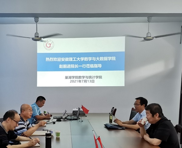 此前,7月13日,数统学院还邀请了安徽理工大学数学与大数据学院院长赵前进教授、副院长李德权教授、系主任耿显亚、段炼等参加我院大数据管理与应用专业申报论证会。赵前进等专家在听取汇报后,分别从新专业设置的必要性、可行性等方面进行了充分讨论和分析,一致认为:数学与统计学院应积极申报大数据管理与应用专业以适应学校长期发展规划,当前已经具备开设该专业的相关条件,希望在后续的工作中,逐步凝练专业特色,打造特色鲜明的大数据管理与应用专业。
