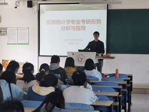 为进一步提高应用统计学专业学生考研的针对性,3月11日上午在慎思楼北201召开“应用统计学专业考研形势分析与指导”主题指导班会。本次班会邀请到了数学与统计学院教研室主任严恒普主讲,辅导员管成功主持。