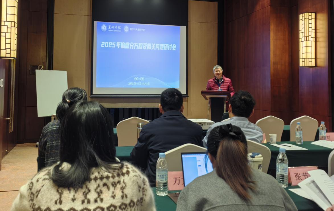 2025年11月26日至28日,数学与大数据学院主办“2025年偏微分方程及相关问题研讨会”。本次研讨会采用线上线下相结合的方式进行,来自中国科技大学、中国人民大学、武汉大学、华中师范大学、澳门大学、安徽大学、北京工商大学等国内偏微分方程及相关领域的近30名专家学者出席会议。会议旨在搭建高水平学术交流平台,分享前沿研究成果。数学与大数据学院师生代表全程参与研讨会。