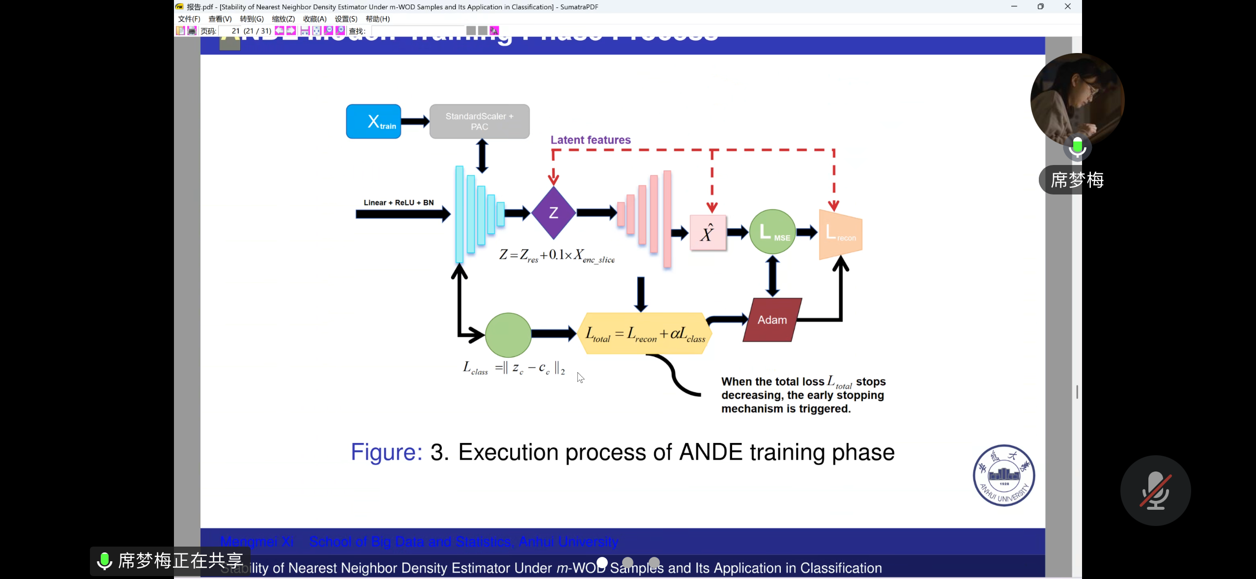席梦梅围绕密度估计的稳定性问题,作了题为《Stability of nearest neighbor density estimator under m-WOD samples and its application in classification》的报告。她基于m-WOD样本框架,研究了最近邻密度估计量的收敛性与稳健性,并展示了其在分类任务中的实际应用价值。