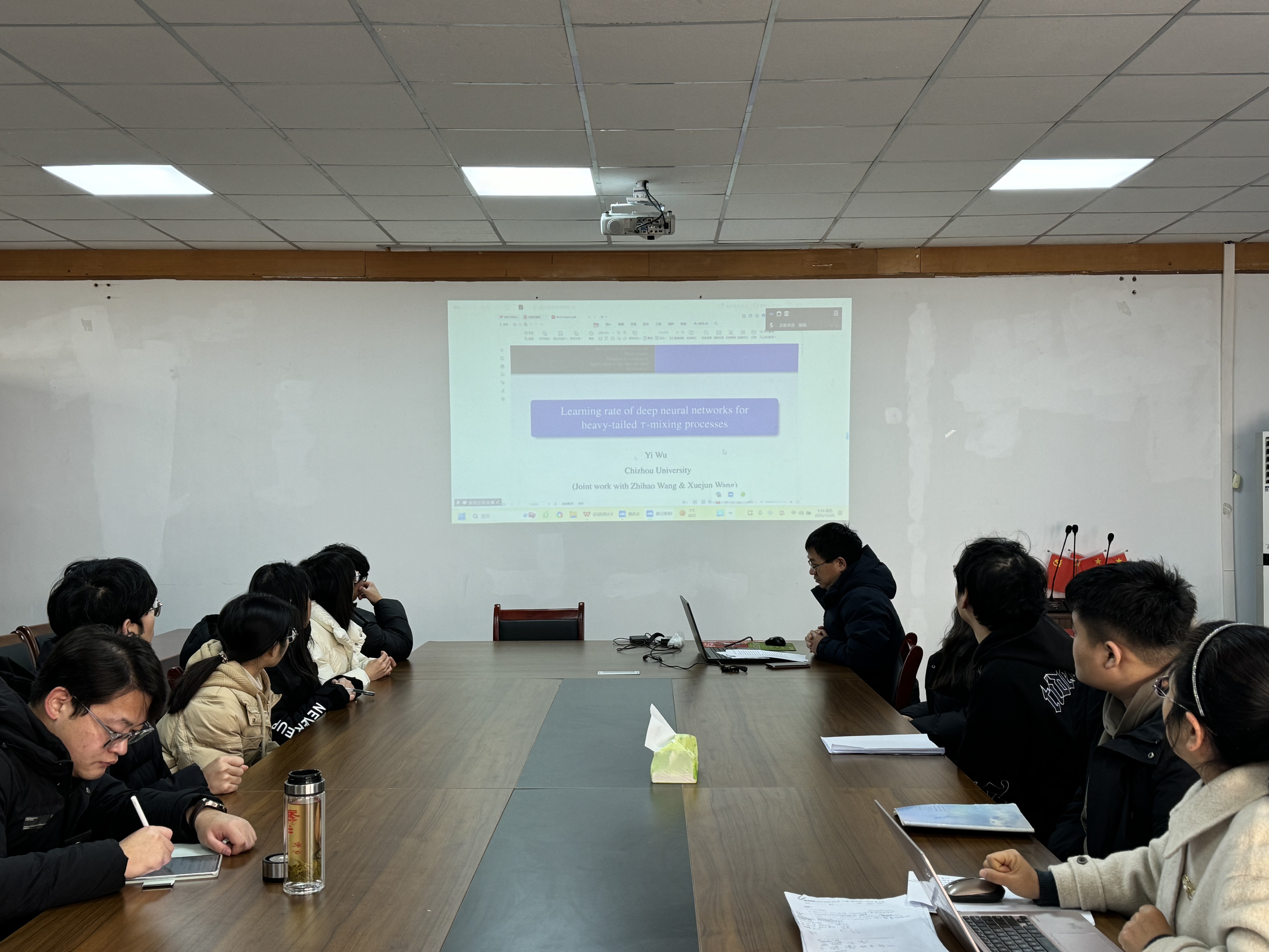 吴燚聚焦深度学习与数理统计的交叉领域,作了题为《Learning rate of deep neural networks for heavy-tailed τ-mixing processes》的学术报告。他系统分析了在重尾τ-混合过程下深度神经网络的学习速率,拓展了非独立同分布数据下深度学习理论的研究边界。