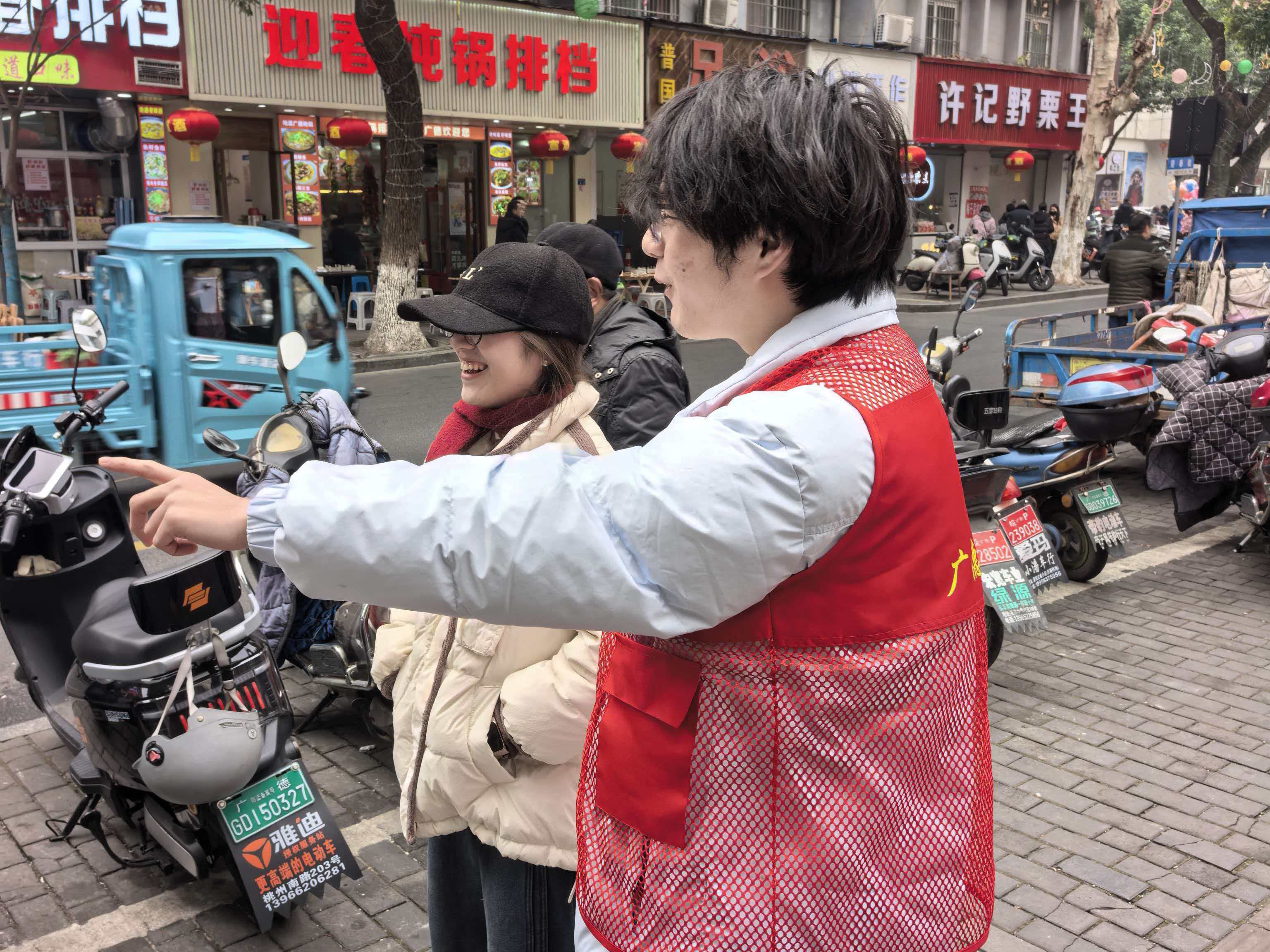 姜涛等同学参与家乡“广德三件套”文旅志愿服务,在烟火气十足的街巷中为游客提供引导。他见证商家承诺食鲜、市民自发摆放休息椅、部门联动保障服务的暖心场景,感受到文旅融合让“流量”变“留量”的独特魅力。作为志愿者,他传递着小城的爱心、温情与朝气,也立志继续做城市的代言人,让更多人读懂广德的烟火之美、人文之暖。