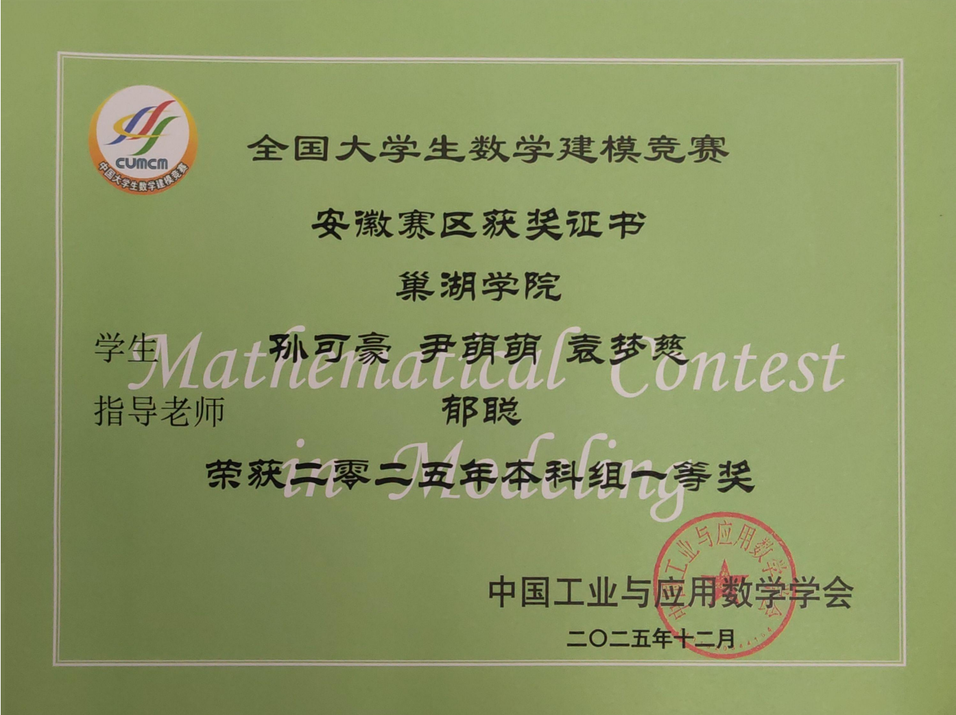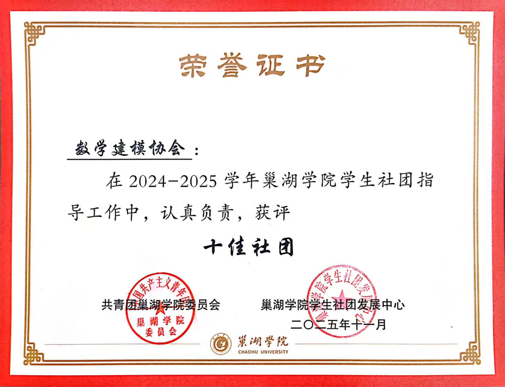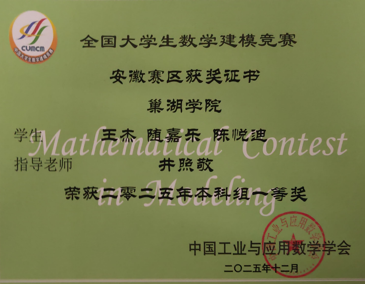 通过全流程赛事组织与分层次培养,数学建模协会助力巢院学子在各级建模竞赛中屡获佳绩,有力推动“学赛结合”育人理念落地,有效培养学生的创新思维与团队协作能力,为学校第二课堂建设和应用型人才培养贡献积极力量。