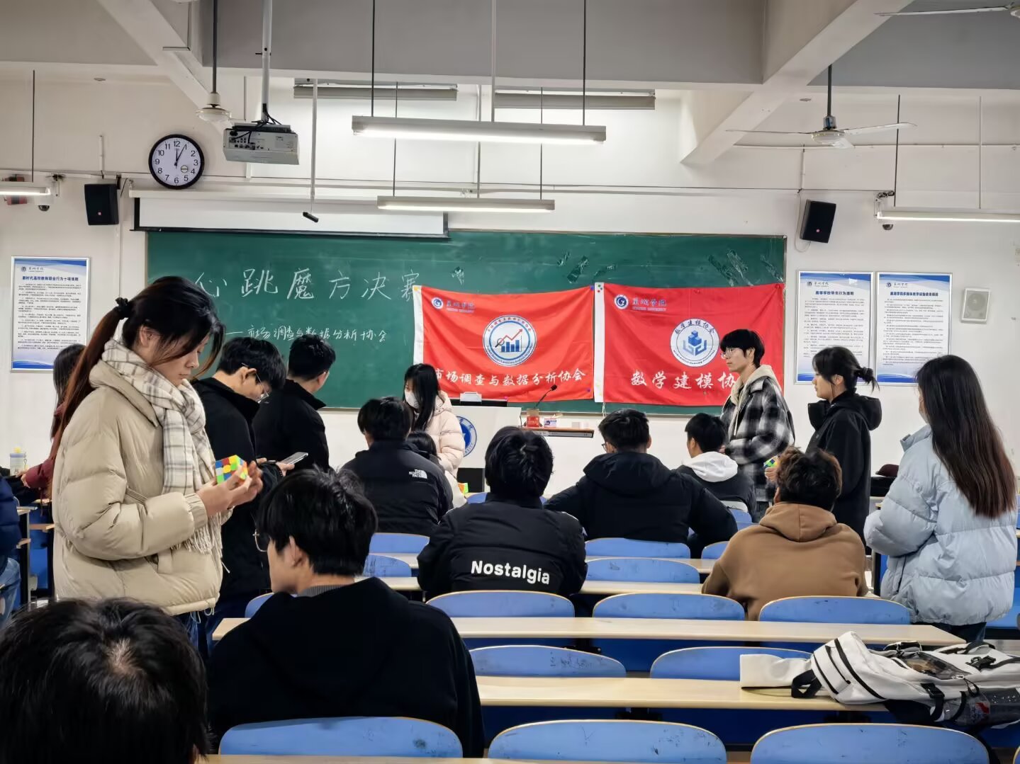 “心跳魔方”活动以趣味竞技为载体,立足数学大数据学院学科特色,将魔方复原与数学逻辑、大数据思维相结合,既激发同学们的逻辑思维、团队协作及抗压应变能力,也让大家在趣味中体会学科魅力、点燃专业学习热情,践行“以学促趣、以趣赋能”的育人理念,同时丰富校园文化生活,为学子搭建提升自我的平台,助力营造积极向上、学科融合的校园氛围。
