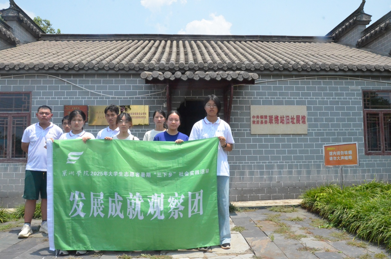 傍晚,实践团队还赶赴西联镇杨坦孙村,深入探访中共铜陵敌后县委联络站遗址。皖南事变后,作为连接长江两岸的“生命线”,联络站在保障情报传递、人员转移、物资运输等方面发挥了关键作用。洪亮、章家元等革命先辈凭借过人胆识和斗争智慧,深入虎穴,开辟并维护了这条至关重要的“生命线”,其惊心动魄的斗争故事令队员们肃然起敬。