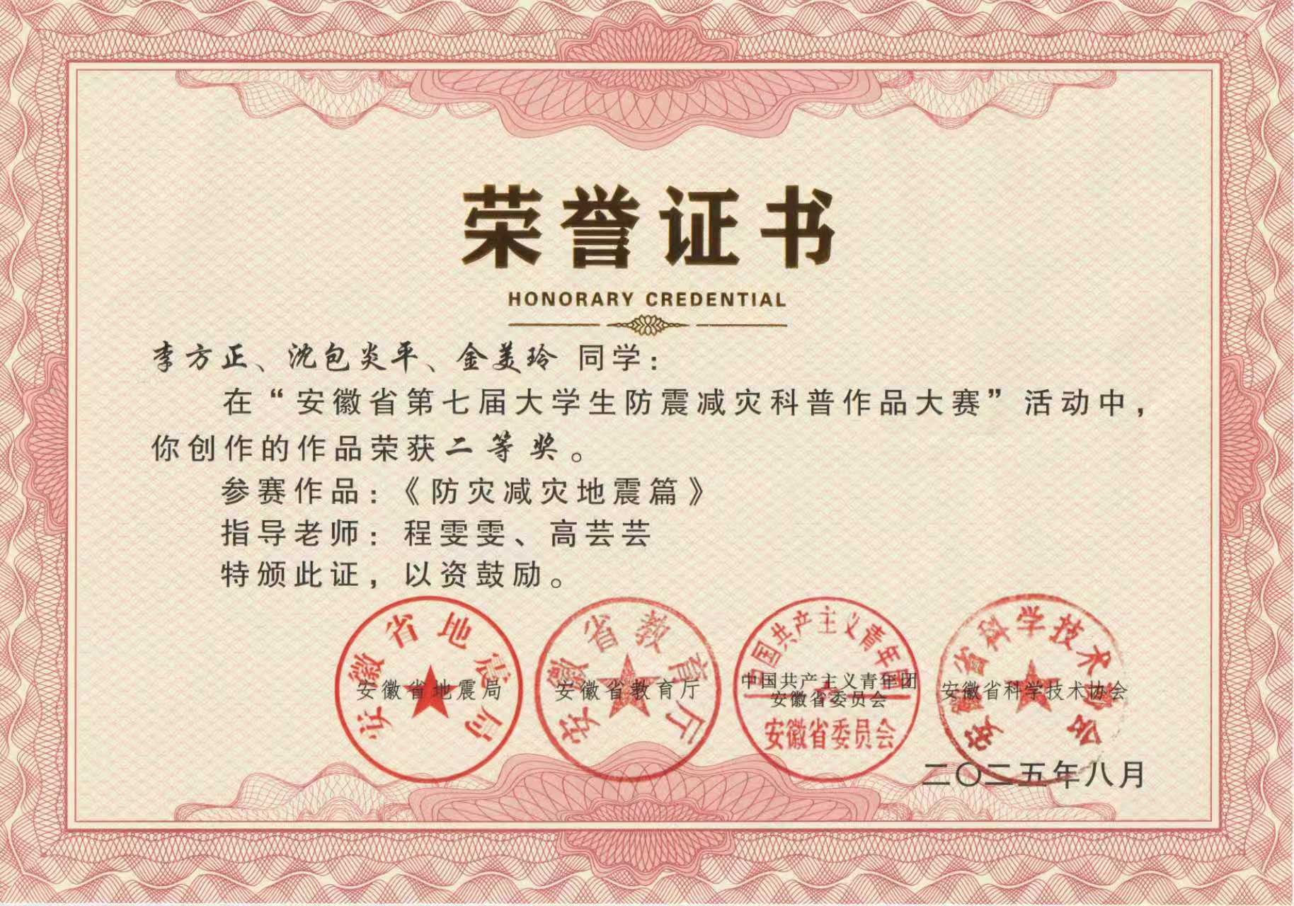 安徽省第七届大学生防震减灾科普作品大赛二等奖