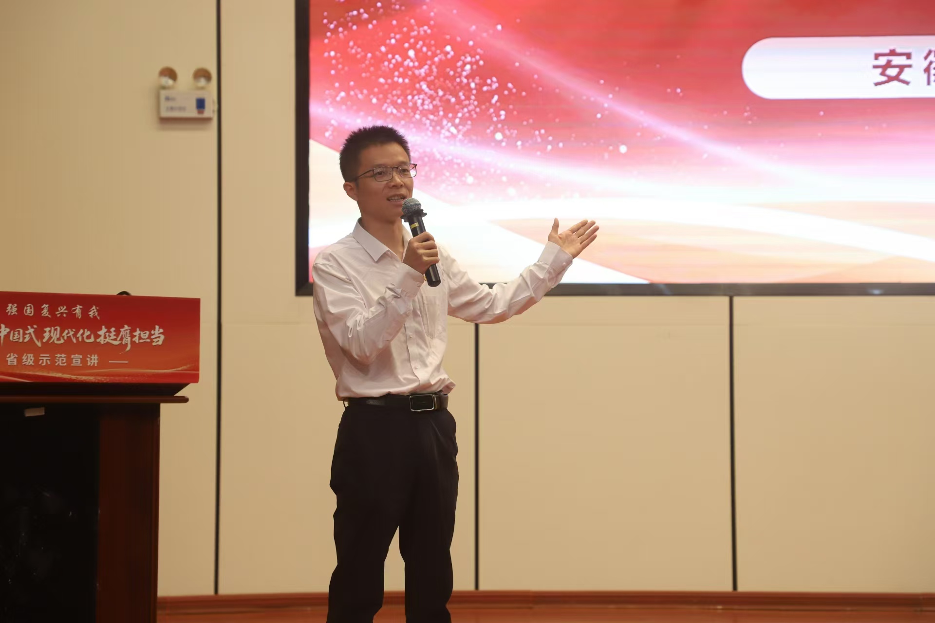 机械工程学院团委书记苏洁红受邀作为宣讲人,以《矢志奋斗,谱写新时代的青春之歌》为主题开展宣讲,与来自淮北市三区一县的青年企业家、青年创新创业人才、高校大学生及青年讲师团成员共话青春担当。《矢志奋斗,谱写新时代的青春之歌》从新时代的青年故事、新时代青年的样子和新时代青年的使命三个维度展开宣讲,以梁文峰、汪滔等青年的成长故事作为切入点,从毛文超、王兴兴等青年的典型中总结他们有“坚定的理想、创新的精神和奋斗的勇气”等共同特点,号召青年做“有理想、敢担当、能吃苦、肯奋斗”的新时代好青年,生动展示了青年如何以实际行动践行“挺膺担当”的时代要求,引发在场观众的强烈共鸣。