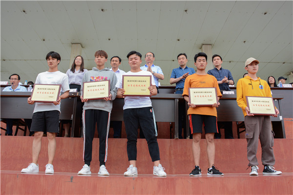 闭幕式伊始,各学院代表队依次入场。本次运动会共有29个代表队,1564名运动员在三个大项及各个小项中进行比拼角逐。在三天里,各项比赛热火朝天、井然有序地开展。运动员们在赛场上挥洒汗水,场边的啦啦队员们呐喊助威,他们用执着和热情共同谱写一曲顽强拼搏、团结互助、昂扬奋进的青春乐章。经过连番鏖战,工商管理学院、化学与材料工程学院、信息工程学院获甲组前三名;17社体2班、16体教3班、17体教2班获乙组前三名;外国语学院、数学与统计学院、艺术学院、旅游管理学院、文学传媒与教育科学学院获“体育道德风尚奖”。本届运动会田径赛事的5个项目中,有8人次刷新了往年校运会的最好成绩。