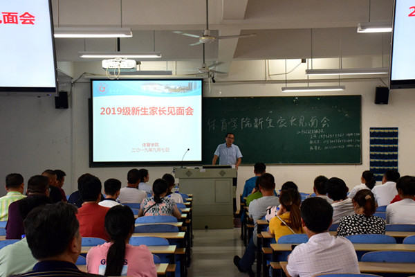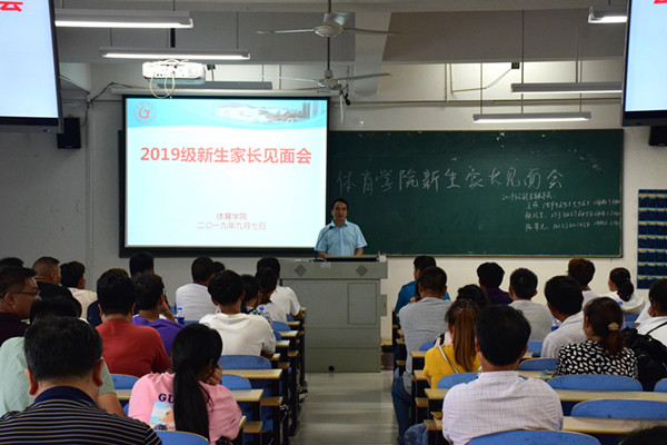 9月7日下午1点半,体育学院2019级新生家长会在慎思楼中201教室举行。党总支书记芮德武、院长姚磊、团总支书记郭世洪以及新生辅导员王燕、张巧生、陈荣光参加了本次家长会,会议由王燕主持。