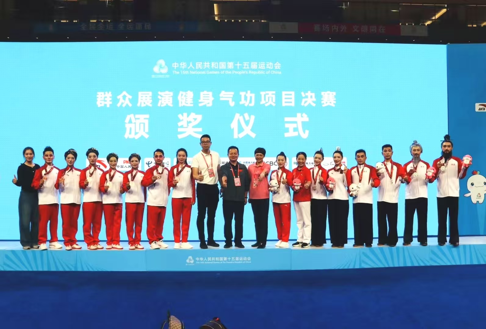 10月18日-21日,中华人民共和国第十五届运动会健身气功决赛在广州清远举行。本届全运会由国家体育总局主办,广东省人民政府及香港、澳门特别行政区政府共同承办,作为国内最高水平的综合性体育赛事,共有来自全国各地40支参赛队、240名运动员参加决赛。大会秉承“绿色、共享、开放、廉洁”的办赛理念,既展现了竞技体育的卓越风采,也体现了群众体育的蓬勃发展。