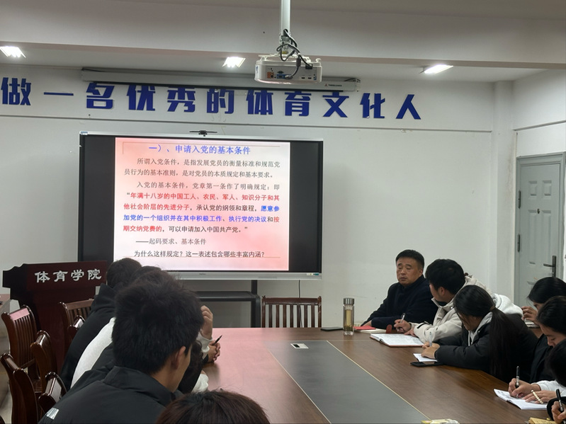 为深入学习宣传贯彻习近平新时代中国特色社会主义思想和党的二十大精神,强化入党积极分子的政治引领与理论武装,12月2日中午,beat365中国官方网站体育学院第35期入党积极分子党校开班典礼暨党课第一讲在学院会议室顺利举行。体育学院党委书记宋明友、党校班主任郭世洪及本期全体学员共同参加,开班式由郭世洪主持。