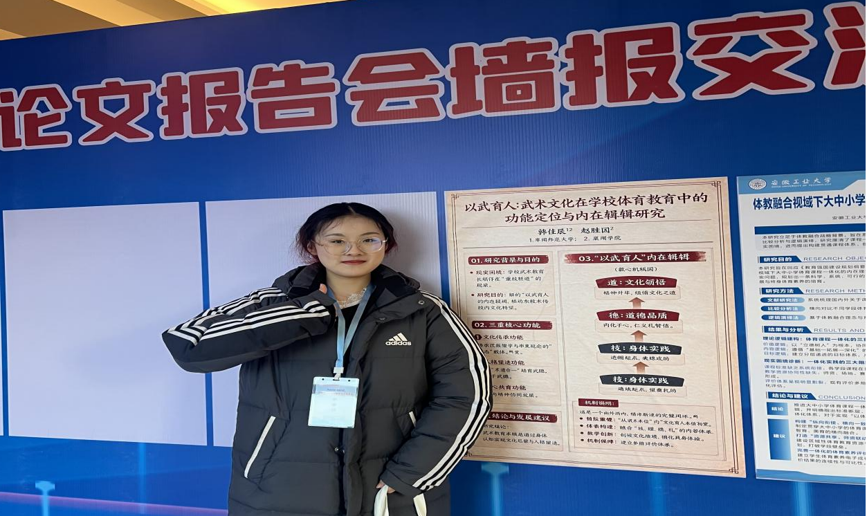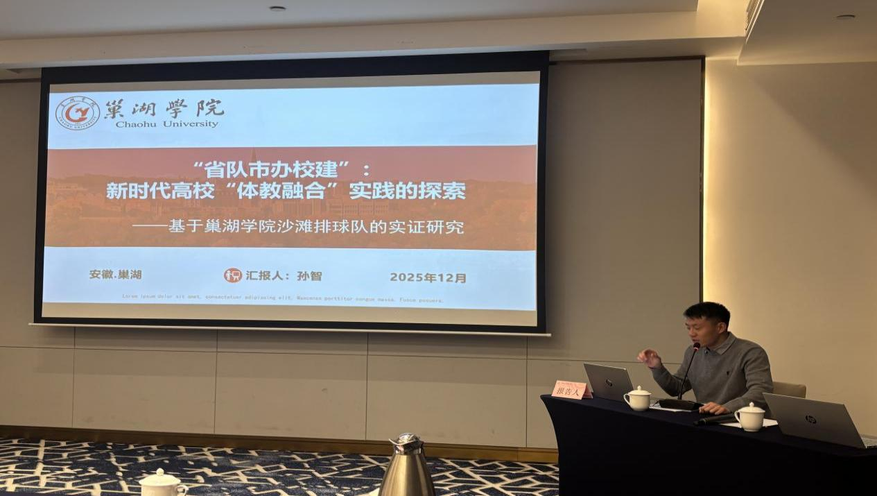 我校体育学院师生在本次学术盛会中表现活跃、成果丰硕。体育学院刘冠启、孙智等五位师生在分论坛中作专题汇报并参与交流:刘冠启系统阐释了我国竞技体育人才培养中“体教融合”模式面临的现实障碍与突破路径;孙智结合我校沙滩排球队建设实践,对“省队市办校建”这一高校体教融合新路径进行了实证分析;韩佳辰从退役运动员转型发展和武术文化育人两个维度,探讨了武术在体教融合中的功能定位与发展策略;后紫娟立足具体案例,深入阐释了民族传统体育文化融入高校体育文化建设的实现路径;刘学则聚焦“双减”政策背景,构建了皖北地区农村学校体育课后服务的多元协同治理模型。