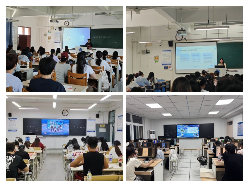 学院整合多元平台资源,构建“线上精准传播 + 线下氛围营造”一体化宣传体系。线下于敏行楼一楼大厅设立宣传专区,通过电子屏循环播放网络安全宣传视频、布置主题展板,营造浓厚氛围。学院辅导员联合地方民警和社区志愿者走进学生宿舍,发放宣传手册100余份,结合真实案例讲解防范网络诈骗的技巧,提升学生安全防护意识。线上通过学院官方网站开设网络安全专栏,并依托班级群、微信公众号、视频号等平台构建传播矩阵,扩大宣传覆盖面。同时,积极组织学生参与“全国大学生网络安全知识竞答”,通过中国大学生在线官网及微信公众号参与的学生超1000人次,有效提升了学习的参与度和实效性。