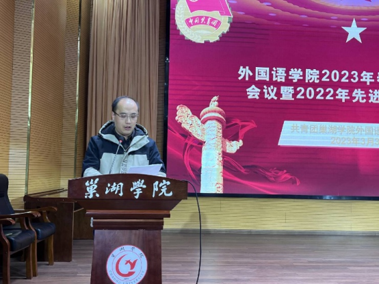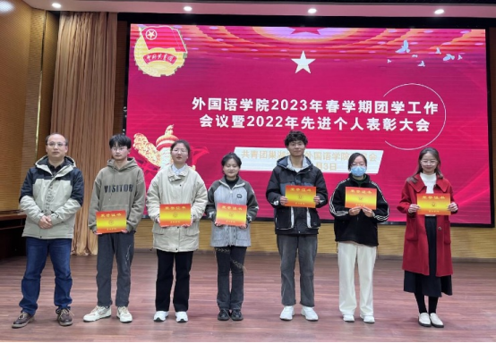 为总结学院2022年度团学工作,全面谋划2023年工作安排,表彰团学工作先进个人,3月3日,外国语学院在求实楼报告厅召开2023年春学期团学工作全体大会暨2022年度先进个人表彰大会,学院党委副书记李磊,团委副书记余仁能及团学组织全体人员参加本次会议。