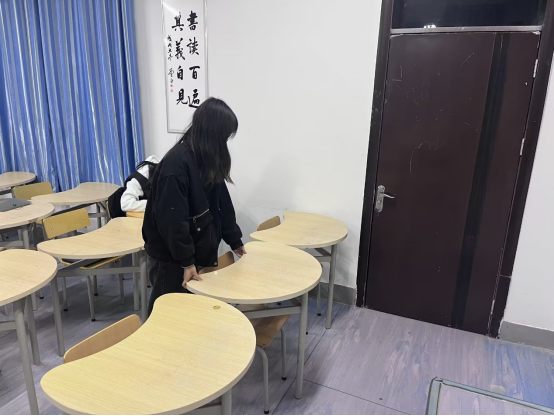 22级商务英语三班团支部组织开展晚自习教室清扫志愿服务主题团日活动。团支书刘永青带领班级同学在每次晚自习结束后,清理教室垃圾,打扫教室卫生,将教室里的桌椅摆放整齐,创造良好的学习环境,以实际行动彰显劳动育人的良好功效。