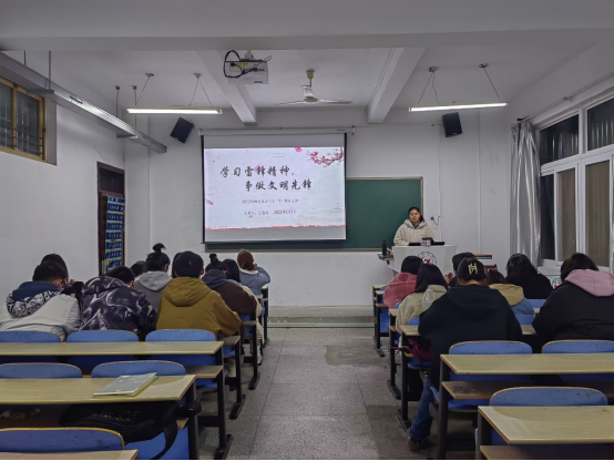 2021级商务英语三班团支部组织开展观看雷锋事迹影片主题团日活动。团支书杨敏带领全体同学们观看雷锋事迹影片,让同学们深刻了解雷锋及雷锋精神内涵,拉进了团员们与雷锋同志的距离。同时,杨敏让同学们以不同的形式,讲述身边的雷锋精神感人事迹,让全班同学更加深刻的认识雷锋精神,学习雷锋的“钉子”精神、“螺丝钉”精神、奉献精神、艰苦奋斗精神。 她号召同学们向雷锋同志学习,传承雷锋精神,让雷锋精神融入日常学习、工作和生活中。