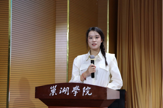2023级英语师范专业张韵婕代表老生发言,她希望学弟学妹们能够尽快适应大学生活,明确自己的目标,努力学习,积极参加各种活动,不断提升自己的综合素质。