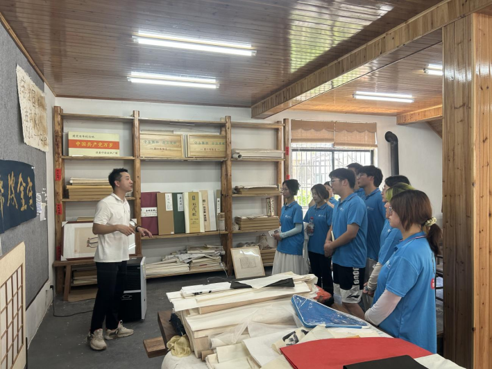 7月5日,实践团队抵达泾县泾川镇守金皮纸厂,在纸厂负责人热情接待与讲解下,开启传统技艺探秘之旅。团队成员们在负责人的带领下参观了皮纸制作车间一系列传统工序。负责人介绍,守金皮纸厂传承泾县皮纸制作技艺,在遵循古法的同时也结合新的生产技术从而产出满足不同需求的皮纸,被广泛用于书画与产品包装等领域。