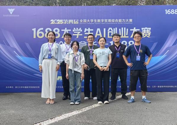 9月26日下午,参赛团队在指导教师的带领下,展开了紧张有序的全过程排练,从路演展示到临场答辩,不放过任何一个细节。27日上午,来自全国各地的100余支队伍陆续走进答辩现场,第四届全国大学生数字贸易综合能力大赛---1688大学生AI创业赛正式拉开帷幕。面对由5名评委组成的评审团,Global Horizon按照多日来的演练,有条不紊地完成了项目汇报。汇报结束后,评委们首先对团队成果给予肯定,随后围绕“货物投放平台、货物供应保障、客户问题及时响应”等关键环节进行提问,团队成员均给予准确且专业的答复。经过不懈努力,不畏强手,一路过关斩将,Global Horizon团队最终获得国赛三等奖的好成绩。