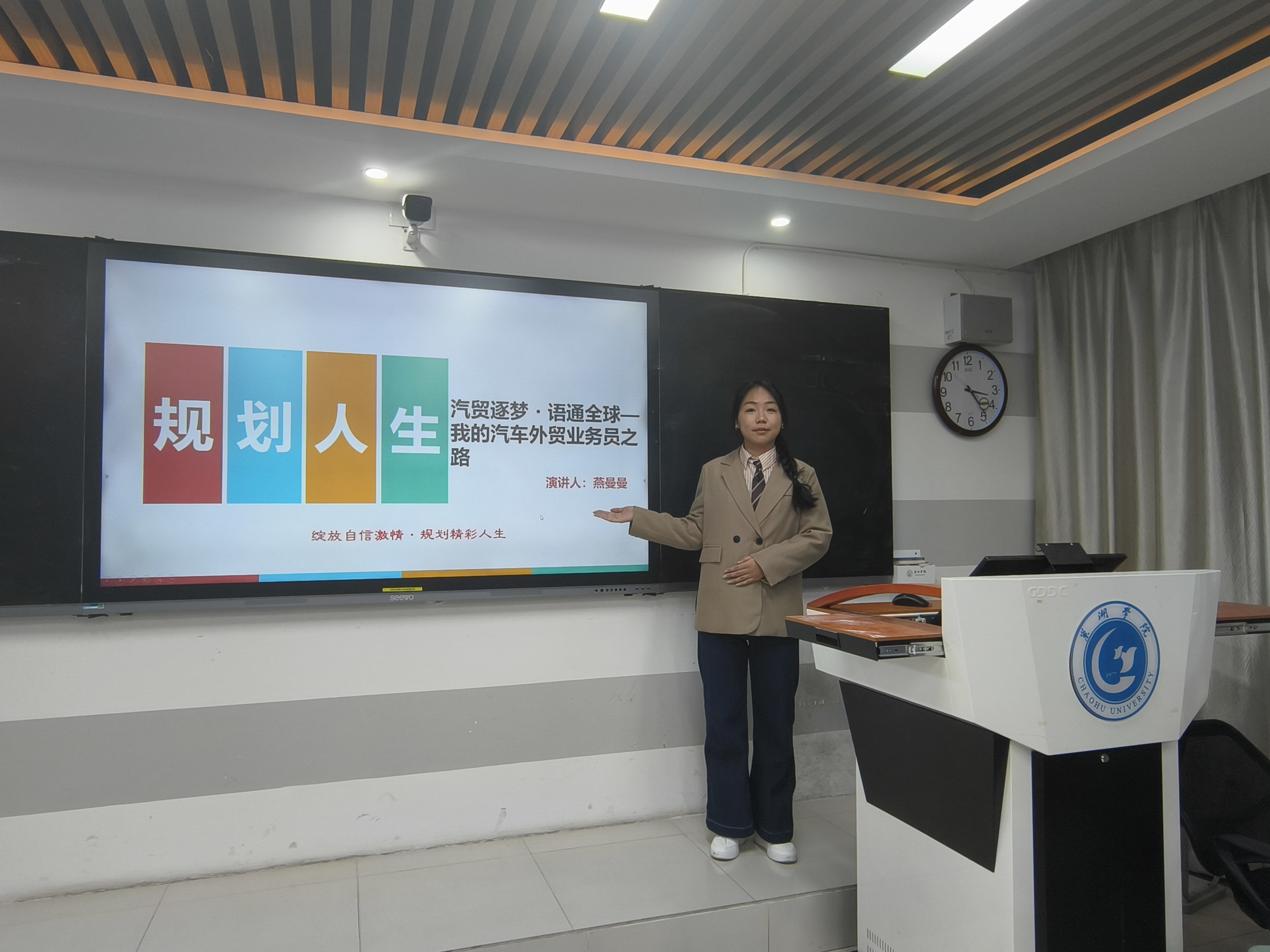 为增强大学生职业生涯规划意识,提高大学生职业规划能力和就业能力,10月22日下午,外国语学院在明德楼105智慧教室举办“筑梦青春志在四方 规划启航职引未来”第三届大学生职业规划大赛,外国语学院党委副书记李磊、全体辅导员担任比赛评委,本次比赛由学院就业联络员余仁能主持。