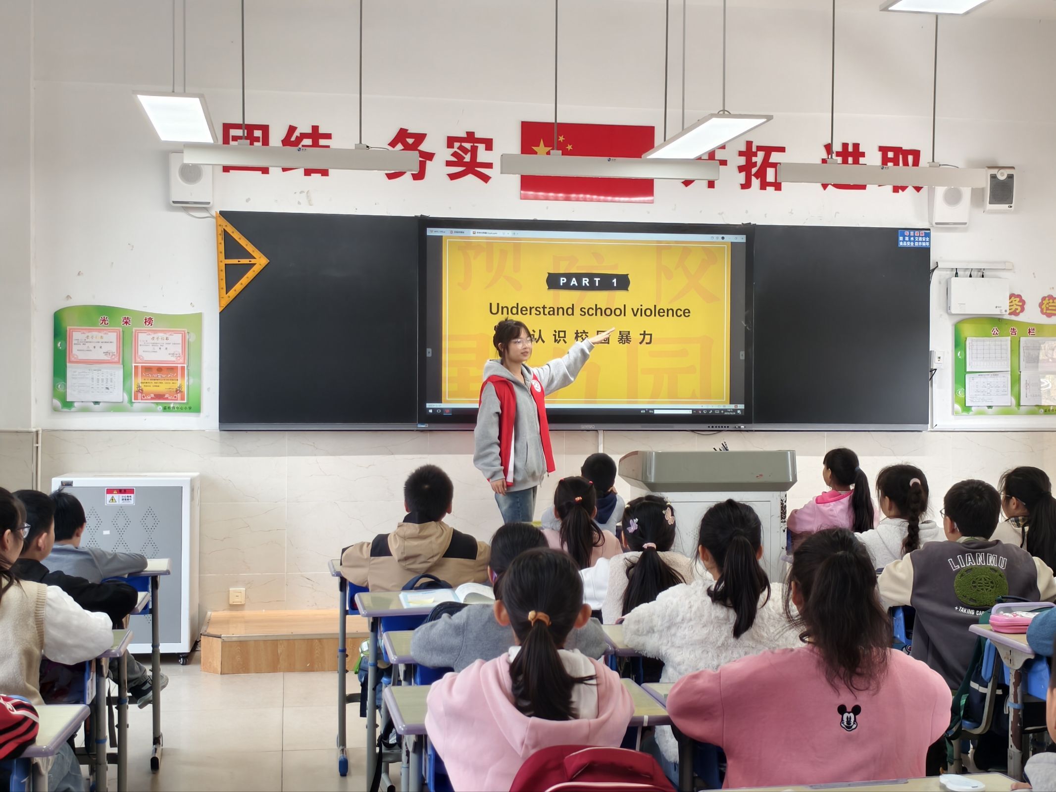 课堂上,一群充满爱心与热忱的志愿者们带来了一系列多元课程。课堂上,他们用生动形象的图片吸引同学们的目光,以温柔关切的话语叮咛着少年们成长。与此同时,志愿者们还传递着课程主题的深刻话语,让知识与理念深入人心。