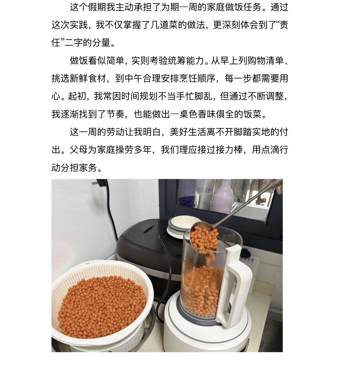 践一次劳动,悟责任担当。劳动是成长的必修课,同学们主动承担家务劳动,洗碗、打扫、烹饪、整理房间,在亲手操持中体会父母的辛劳,涵养家庭责任感。