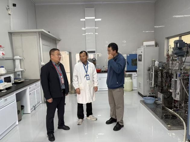 陈小举一行参观了安徽科宝生物工程有限公司的企业文化展览区及生产车间,并与工作人员交流了发酵过程调控等技术问题,并就企业目前遇到的中试实验瓶颈问题,提出改进建议。另外,双方就微生物合成重组人源蛋白达成合作意向并签订项目意向书。