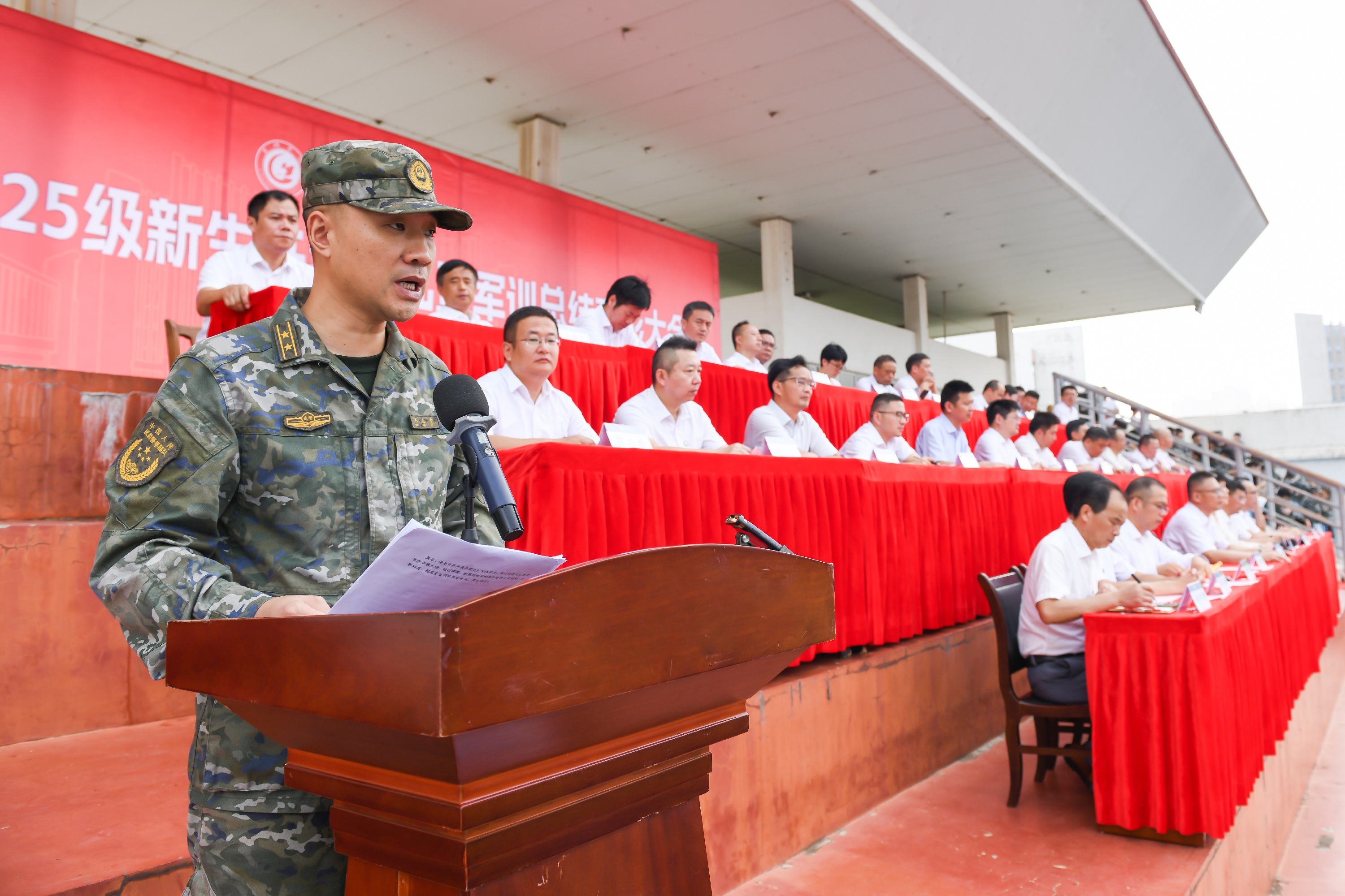 周祥宣读学校《关于表彰2025级新生军训工作先进集体和先进个人的决定》。
