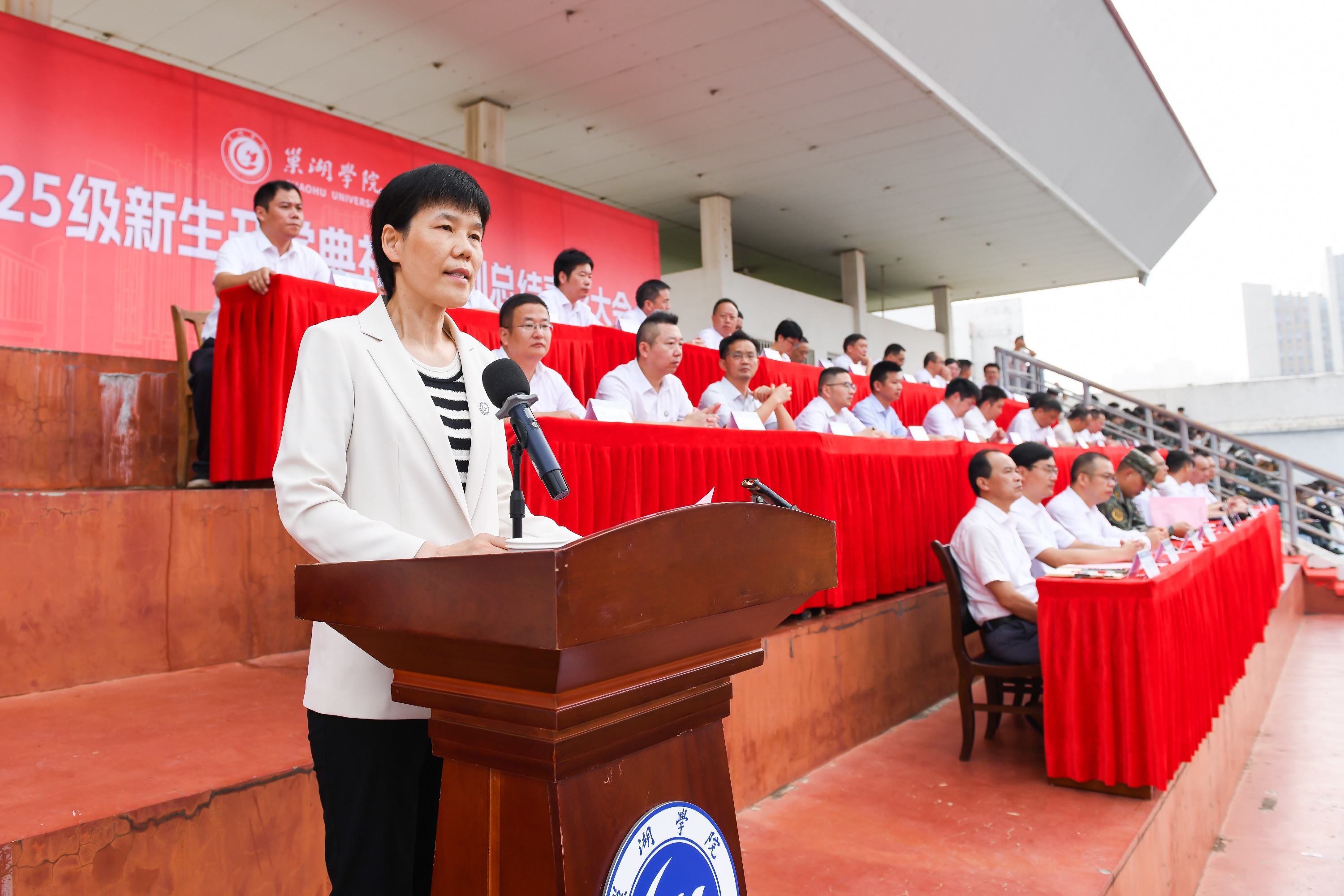 张莉代表学校向新入学的3867名本科生、37名联合培养硕士研究生、6名外国留学生表示热烈欢迎,对新生家长和老师们表达敬意,并向军训教官表示诚挚感谢。张莉寄语新同学,要坚定理想信念,胸怀家国,以奋斗的姿态积极投身于实践。要躬身立学,勤学善思,主动求知解惑,夯实基础,锤炼品格。要修身立德,勤于实践锻炼,践行beat365中国官方网站“德学并举 知行合一”的校训,成为德智体美劳全面发展的社会主义事业建设者和接班人。