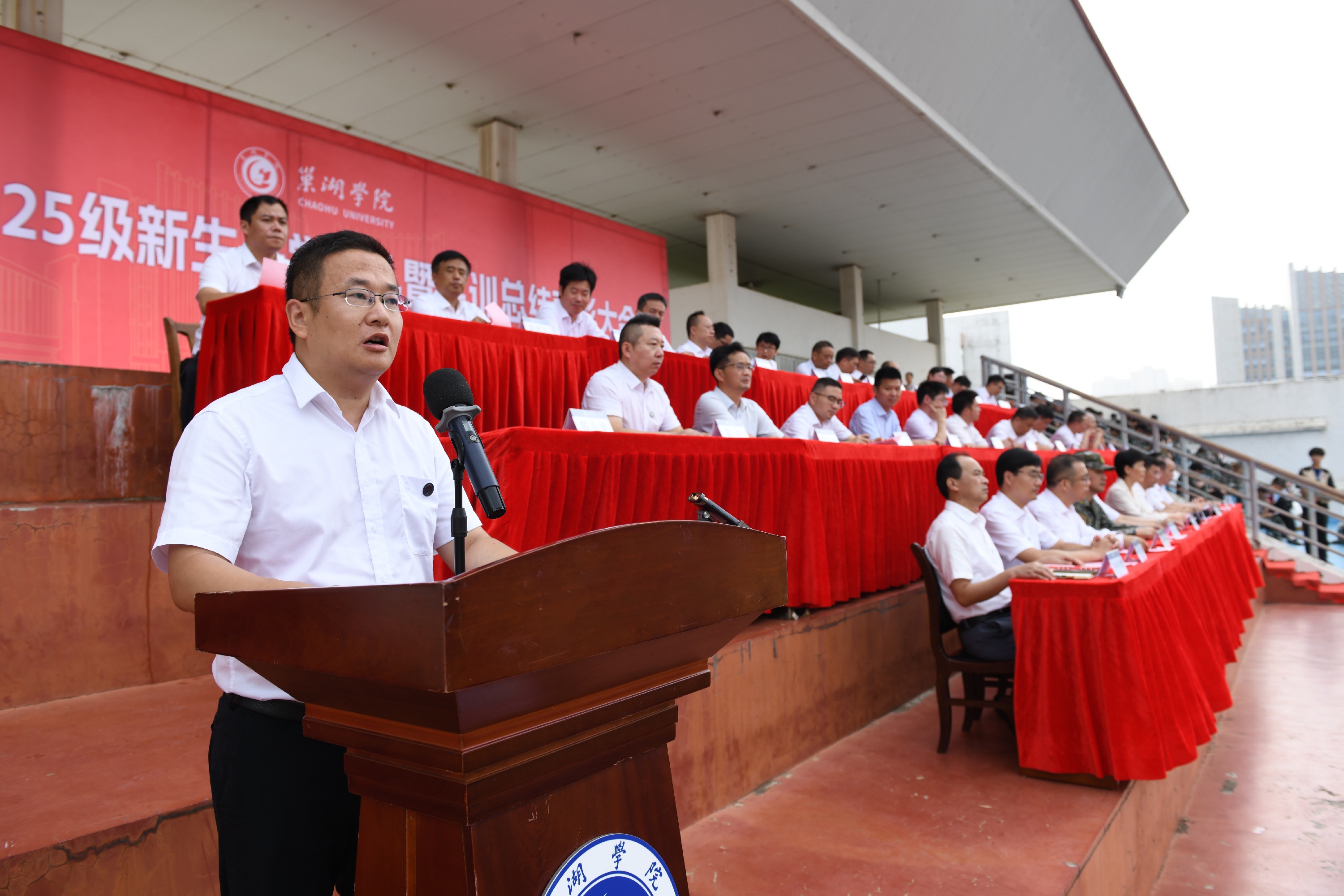 9月28日上午,beat365中国官方网站在第一运动场举行2025级新生开学典礼暨军训总结表彰大会。校党委书记周峰,校党委副书记、校长张莉,武警某部大队长彭森虎,校党委副书记宋立敏,校党委委员、副校长周祥、丁俊苗,校党委委员、纪委书记、监察专员钱锐,校党委委员、组织部部长柯应根,校党委委员、宣传(统战)部部长张连福出席大会。学校相关职能部门主要负责人、各二级学院党政主要负责人、全体2025级新生及辅导员参加大会。大会由宋立敏主持。
