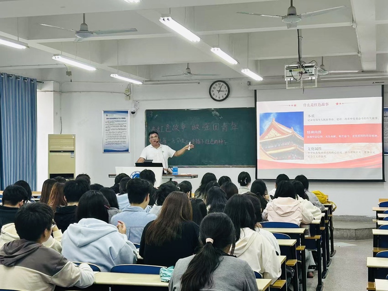余仁能从“什么是红色故事”“为什么要讲好红色故事”“红色故事对强国青年的意义”“如何做好新时代强国青年”四个方面展开授课。他通过讲述鲜活的红色人物事迹与经典红色故事,生动阐释了红色故事的深层价值——作为中华民族精神谱系的重要组成,红色故事承载着中国共产党的信仰之光,更是激励当代青年砥砺前行的精神源泉,让学生对红色文化的内涵有了更深刻的认知。余仁能以外国语学院红色文化口述史实践团队为实例,详细介绍了环巢湖地区丰富的红色文化资源,以及当地乡镇在红色文化传承中的创新做法与典型经验。他鼓励同学们主动走进红色教育基地,在实地探访中汲取红色力量。同时,余仁能还分享了外国语学院在红色育人领域的工作成果与特色做法,希望更多同学加入学院红色育人质量提升工程项目的系列活动,结合自身学科专业优势,创新红色故事传播方式,让红色文化在青年群体中焕发新活力。