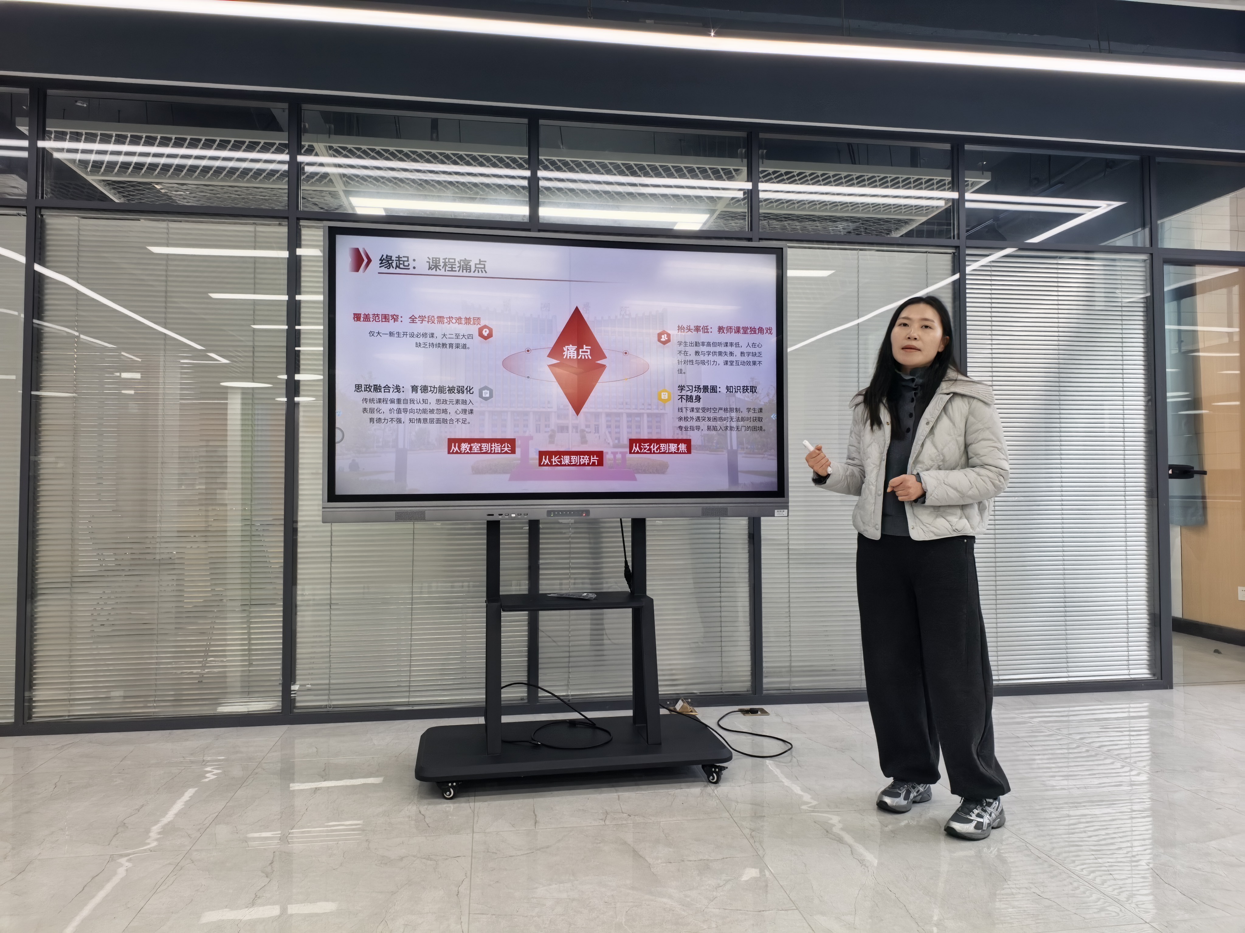 3月19日下午,我校第三批网络名师工作坊和大学生网络文化工作室及精品思政微课程资源库结项答辩会在学生社区服务中心网络思政中心举行,宣传部副部长朱春花、学工部副部长金晶、马克思主义学院副院长屈卡乐担任评审。