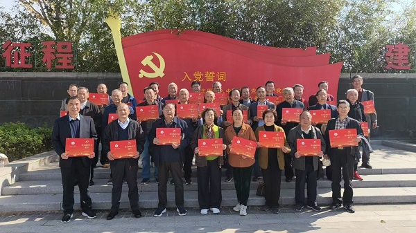 参观陈列馆后,在庄严的党旗下,离退休党支部为离退休党员过集体“政治生日”,赠送贺卡表达组织的关怀。离退休党员们纷纷回顾入党经历,共同分享心路历程,表达对党的忠诚和继续发挥余热的决心。